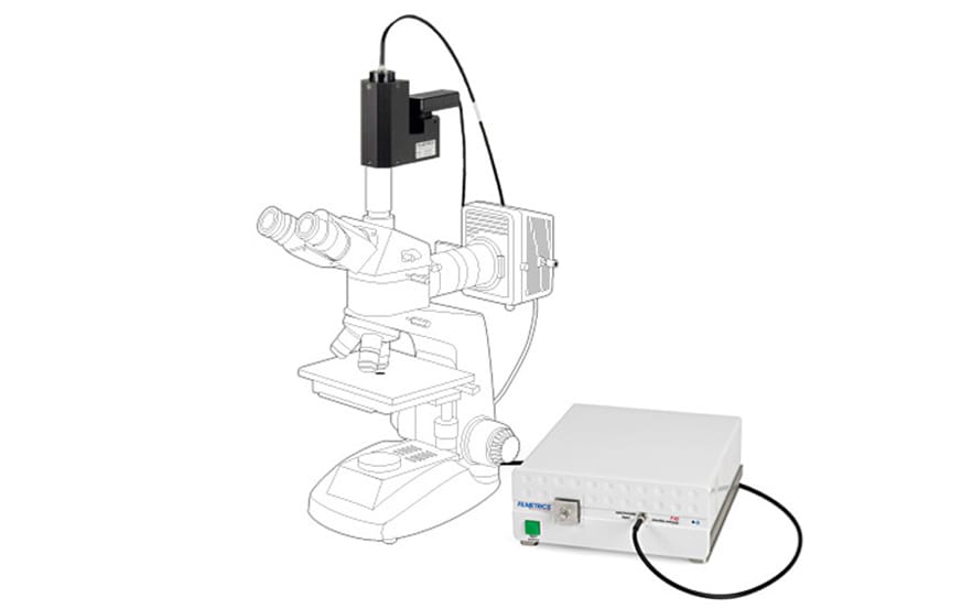 Filmetrics F40 薄膜厚度測量儀光譜測量系統(tǒng)讓用戶簡單快速地測量薄膜的厚度和光學(xué)常數(shù),通過對待測膜層的上下界面間反射光譜的分析,幾秒鐘內(nèi)就可測量結(jié)果。當(dāng)測量需要在待測樣品表面的某些微小限定區(qū)域進(jìn)行,或者其他應(yīng)用要求光斑小至1微米時,可以使用Filmetrics F40 薄膜厚度測量儀。使用先校正顯微鏡的物鏡,再進(jìn)行測量,即可獲得厚度及光學(xué)參數(shù)值。只要透過FilmetricsC-mount連接附件,Filmetrics F40 薄膜厚度測量儀就可以和市面上多數(shù)的顯微鏡連接使用。C-mount上裝備有CCD攝像頭,可以讓用戶從電腦屏幕上清晰地看樣品和測量位置。